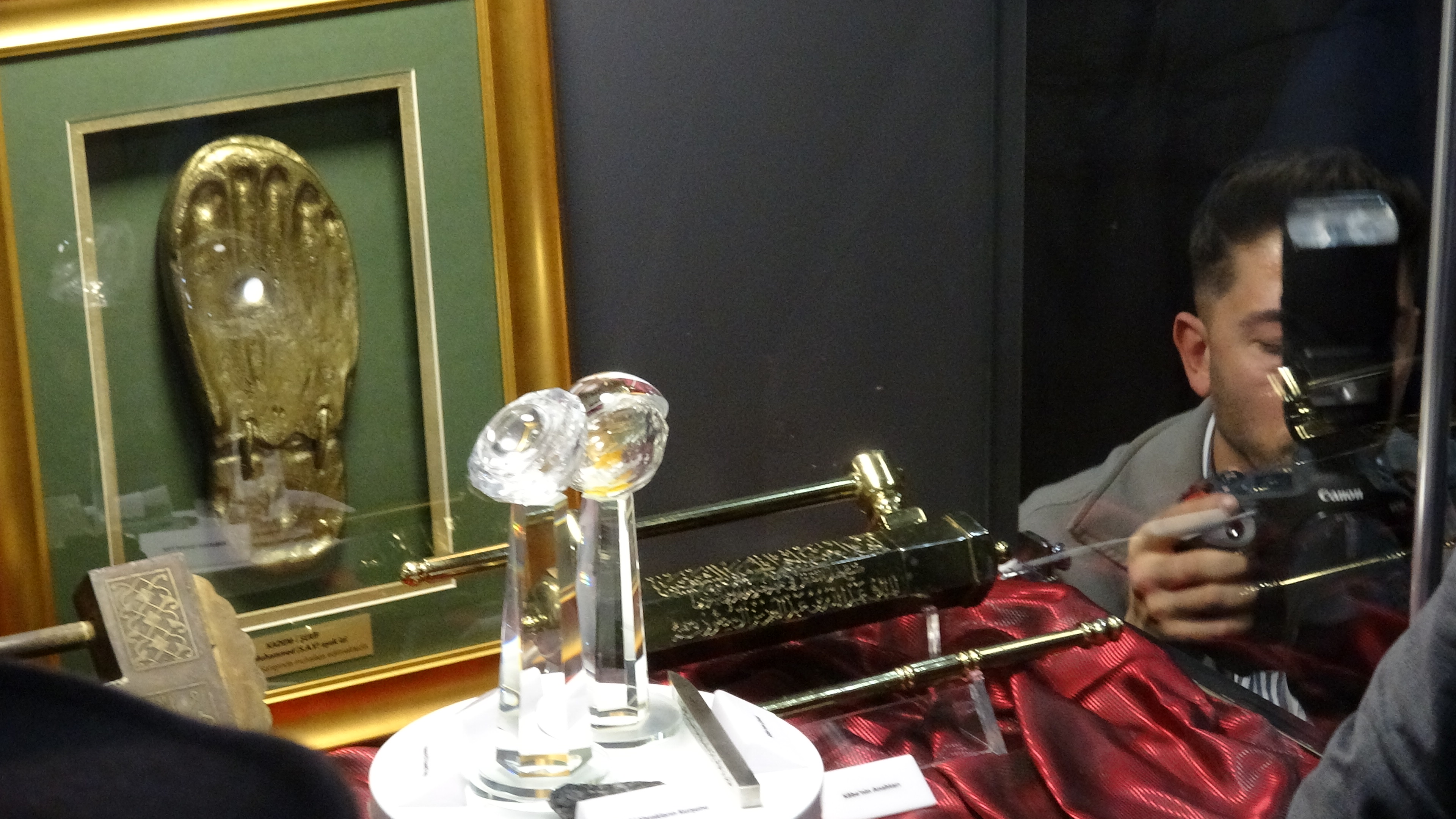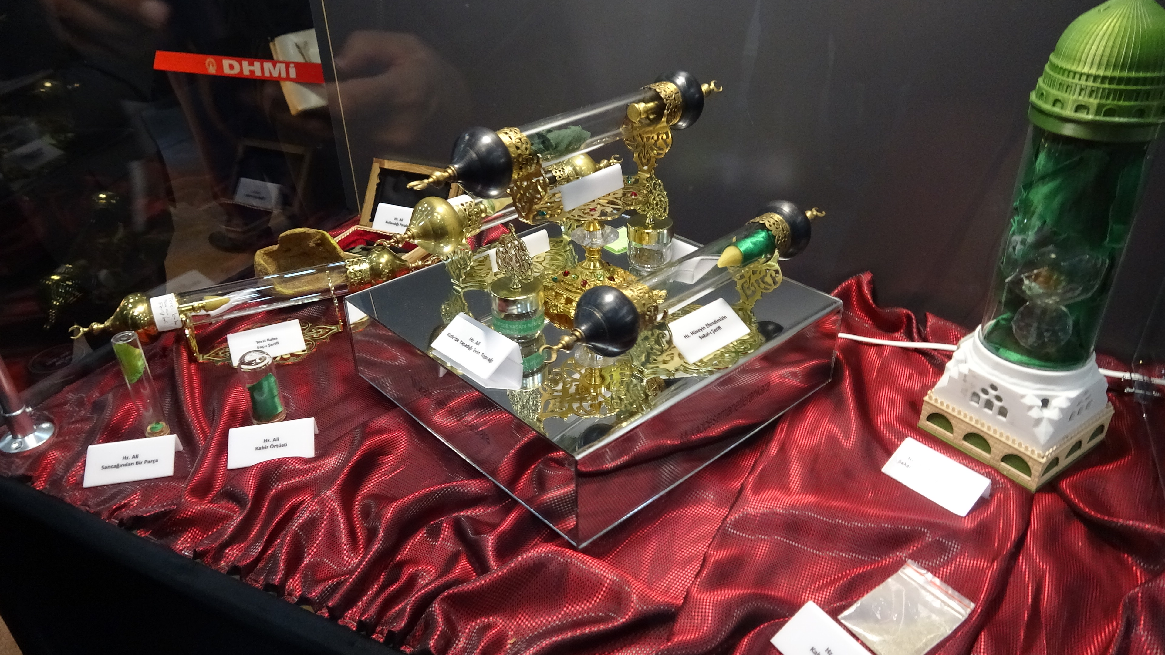 Peygamber Efendimiz Hz. Muhammed (S.A.V.)'in Sakal-ı Şerif'i ve Saç-ı Şerifleri, Hücre-i Saadet Örtüsü, kabir toprağı ile Hz. Ali Efendimiz'in sancağının bir parçası, Hz. Hüseyin ve Hz. Hasan Efendilerimize ait Sakal-ı Şerifler, İslamiyet'in sembolü pek çok eserin yanı sıra Selçuklu ve Osmanlı dönemine ait Kur'an-ı Kerimler, padişahlara ait hat tabloları gibi kıymetli eserlerin yer aldığı bu özel ve maneviyatı büyük sergi Topkapı Sarayı'ndan, Milli Saraylar'dan ve Ankara'dan Sn. Erol Güzel'e ait toplam 63 parçadan oluşuyor.