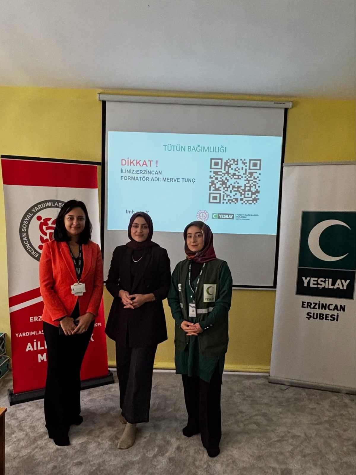 Türkiye Yeşilay Cemiyeti Erzincan Şubesi olarak, Türkiye Bağımlılıkla Mücadele Yetişkin Eğitimi Programı kapsamında bu hafta üç farklı Aile Destek Merkezinde eğitim faaliyetleri gerçekleştirildi.